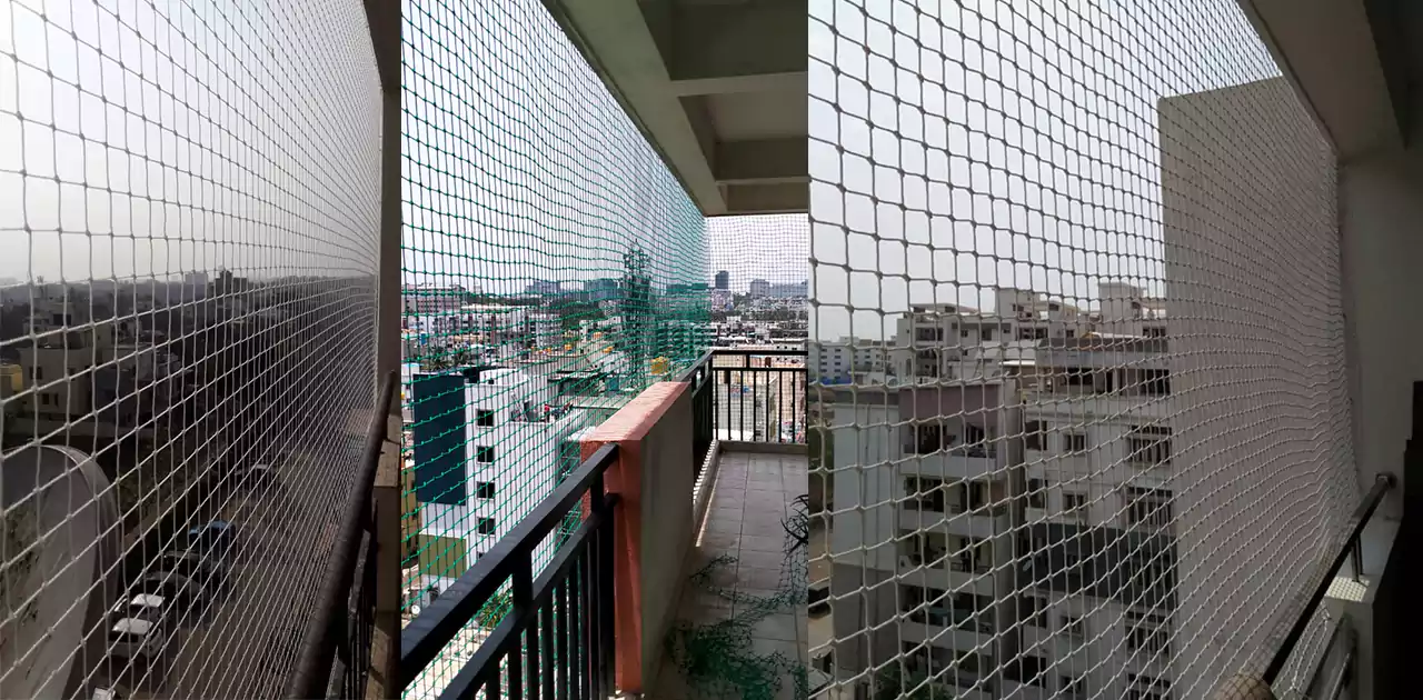 Balcony safety nets are installed to give safety and well being at home protecting children, adults, pets and objects that may height, terraces, balcony, window, doors, stairs, pools etc. Balcony nets are helps us to protect our properties as well as people.